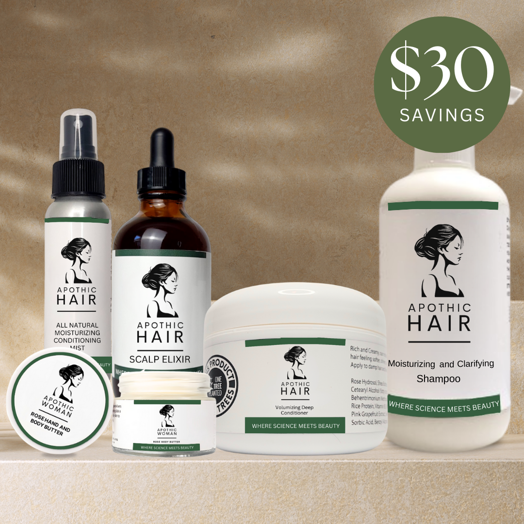 INCLUDES: x1 120 ML Elixir, x1 4 oz Deep Conditioner, x1 Shampoo, x1 Body Butter, Moisturizing Conditioning Mist